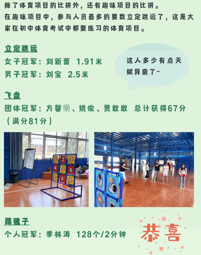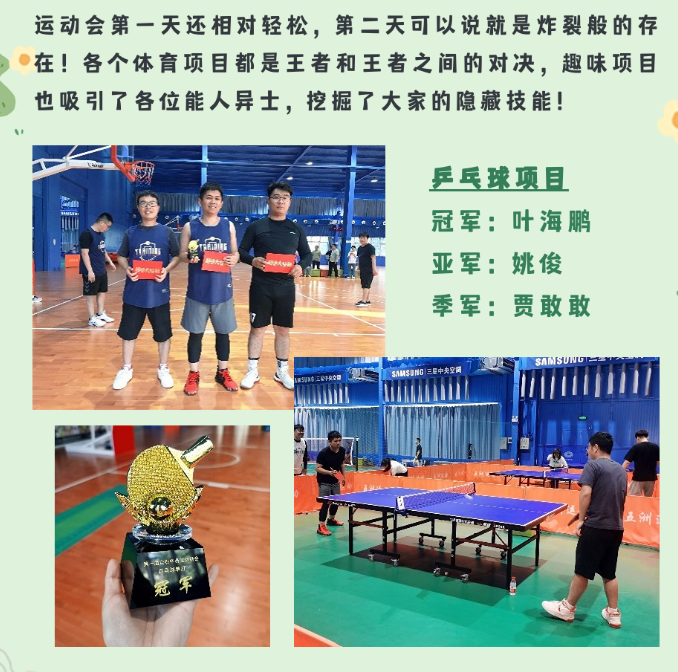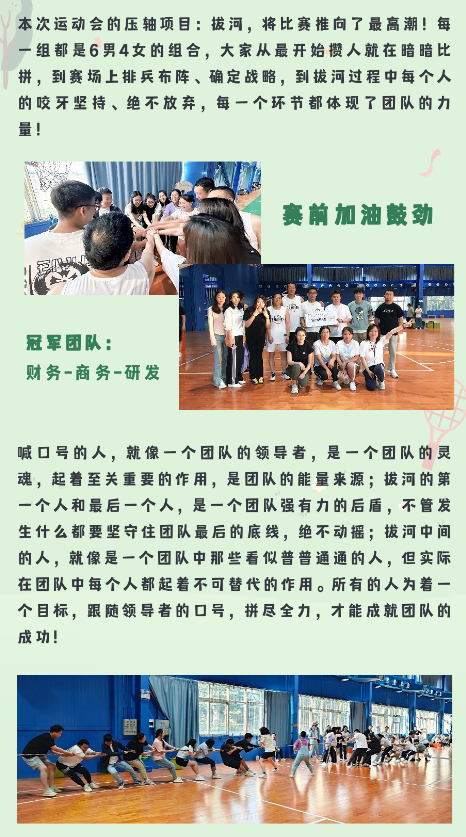 相信通過(guò)這次運動(dòng)會(huì ),大家在合作和對抗中都對其他人有了新的認知,在未來(lái)的工作和生活中,能夠更加融洽更加默契!